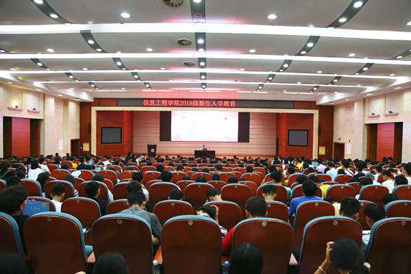 9月11日晚,信息工程学院在图书馆报告厅再次举行了三场2019级新生入学教育专题讲座,辅导员杨帆、杨昌俊、王楠老师依次分别围绕“女学生自我安全教育”、“大学生宿舍卫生管理”、“大学生德育培养”这三个专题来给新生们做专题教育,学院2019级全体新生参加。