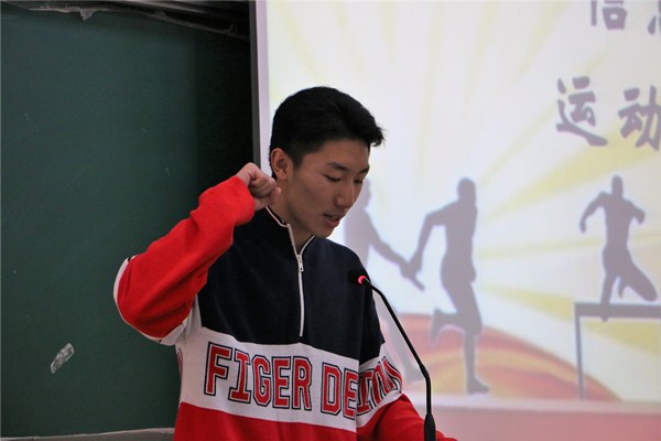 运动员代表项禹皓同学作表态发言