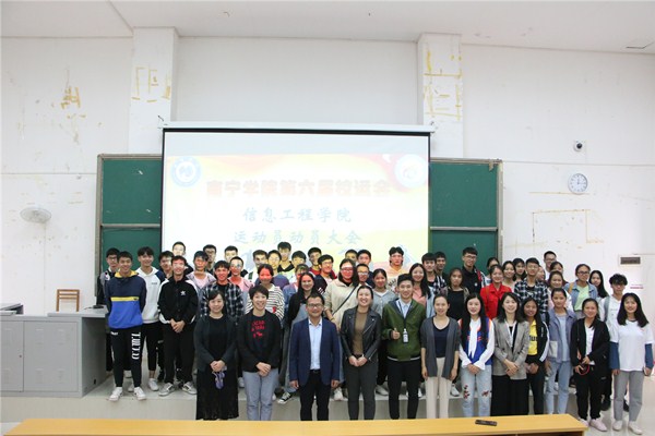 10月31日中午,信息工程学院在敷文园D104举行了第六届田径运动会动员会。学院副院长邓斌,学工科科长刘珍珍,辅导员韦双妮、杨昌俊、孙思涵、刘欣蕾、何丹丹、王永强、罗秀丹等老师出席本次会议,全体运动员及各组织学生代表参加会议。大会由学生干部梁秋霞同学主持。