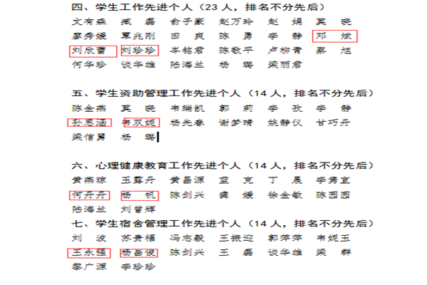 学工科多名老师荣获先进个人的获奖名单