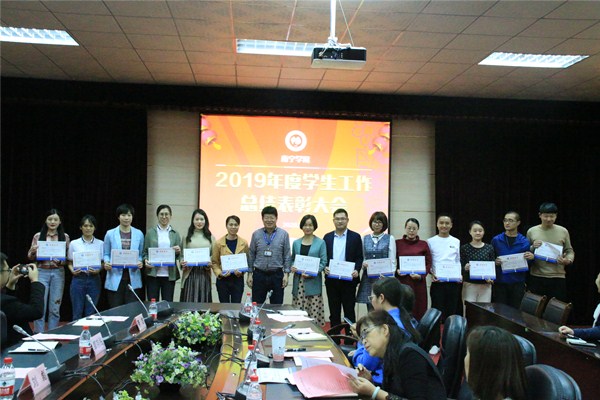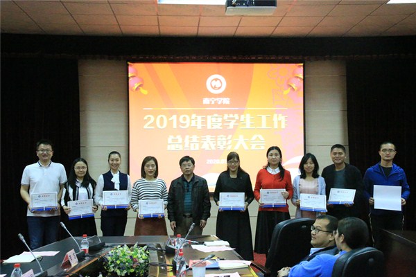 1月7日下午,2019年度学生工作总结表彰大会在活动中心302举行。校党委书记刘彪,校党委副书记、纪委书记覃存民,学工处处长李林伟,学工系统全体同仁参加本次大会。会上总结了过去一年的工作并对先进集体和个人进行表彰。其中,我院分团委荣获2018-2019学年五四红旗分团委的荣誉称号,学工科多名老师荣获先进个人的称号。(信息工程学院供稿 文/罗秀丹 图/校学工处)