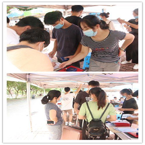 7月22日,信息工程学院在学校体育训练馆前面为学院最后一批返校毕业生(100多人)发放毕业证、学士学位证和办理离校手续等工作。副院长邓斌、学工科科长刘珍珍、毕业班辅导员杨帆、杨昌俊、学工科全体老师以及办公室助理和学生干部们参与本次离校手续工作。