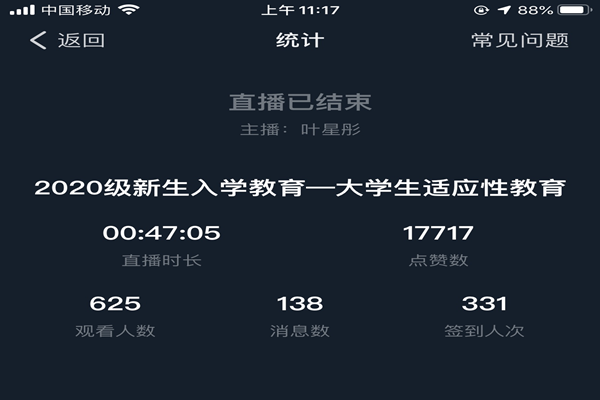 9月26日-9月28日,学院辅导员叶星彤、王永强老师通过钉钉直播平台举行了入学教育专题讲座。两位老师分别围绕“大学生适应性教育”、“大学生诚信教育”这两个专题来给新生们做专题教育,学院2020级全体新生参加。