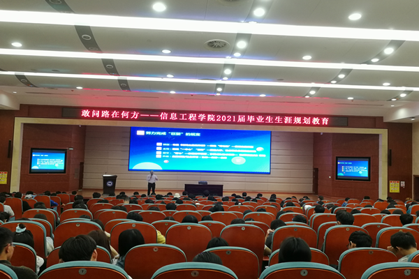 10月6日晚,信息工程学院在图书馆报告厅举行了2021届毕业生生涯规划教育专题讲座。学院邓斌副院长担任本次讲座的主讲人,学院毕业班辅导员、就业指导老师及2021届全体毕业生到场聆听讲座。