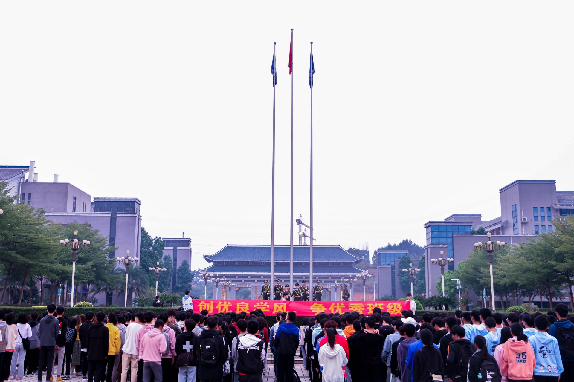 11月16日早上,信息工程学院在学校南广场升旗台举行“创优良学风,争优秀班级”主题升旗仪式暨第八届班风学风大比拼活动启动仪式。学院2018、2019级学生代表、学院全体学生党员干部、2020级全体学生约1000人参加了本次活动。本次活动由学生干部彭美琪同学主持。