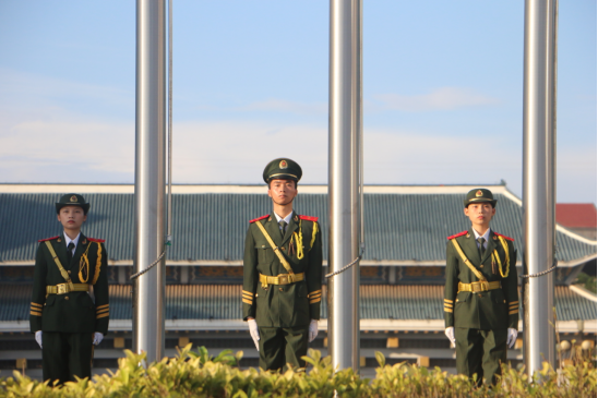 第一项议程,升国旗,奏唱国歌。伴随着国歌的旋律响起,同学们目视前方,意气风发,注视着那威严而又庄重的国旗缓缓升上高空,心中涌现着那无限的爱国情怀。