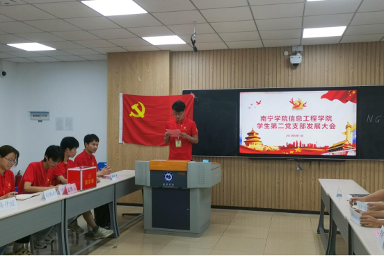 为永葆支部青春,注入新血液,凝聚新力量。2023年6月13日12:00,南宁学院信息工程学院学生第二党支部吸收预备党员会议在敷文园A114召开。信息工程学院党委专职组织员、学生第二党支部书记叶星彤老师及全体党员同志参加此次大会。