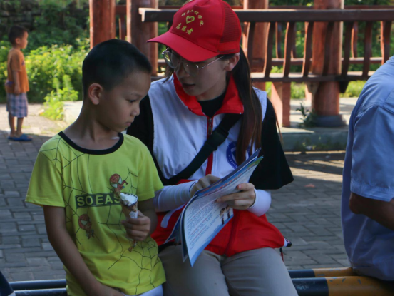 “天下无诈”宣传实践团的成员向留守儿童普及反诈知识