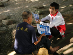 “天下无诈”宣传实践团的成员向村民进行反诈宣传