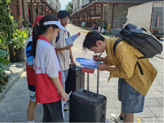 在和驻村第一书记的交流中了解到,警方和社区志愿者都在积极的走村入户宣传,持续进行打击防范电信诈骗的宣传,不断强化群众们的反诈意识。听到同学们正在准备普法宣传系列短剧、反诈脱口秀,改编反诈歌曲和小品等节目,她表示此类接地气的方式才能让宣传更有人气,也期待能在忠良村的文明实践舞台上看到大家的演出。本次宣传活动,有效增强了游客及辖区群众防范电信诈骗的“免疫力”和“抵抗力”,为促进景区和谐、稳定经营发展奠定坚实基础。团队成员也了解到了现阶段乡村反诈的现状以及存在的困难,希望能尽己所能,以微薄之力构建乡村反诈的坚固长城。