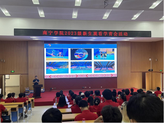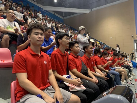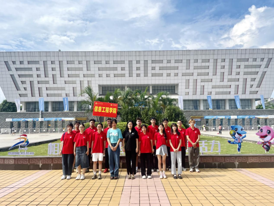 8月13日,第一届全国学生(青年)运动会女子手球(公开组)项目(以下简称:学青会)比赛在南宁学院体育馆隆重开赛,信息工程学院新老学生代表和领导老师们参加了当日的开幕式及相关活动。