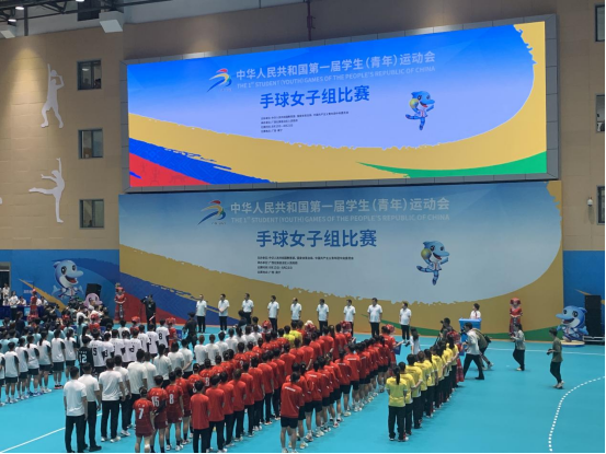 第一届全国学生(青年)运动会女子手球开幕式活动现场
