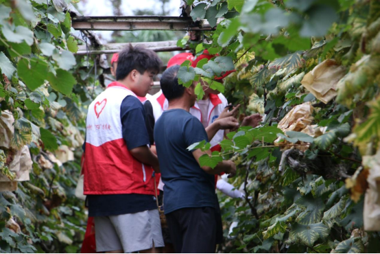 为了解五架车村葡萄种植情况,一甲村赵德新副书记带领南宁学院“萤火探兴”乡村振兴实践团到五架车村农户的葡萄地里,赵德新副书记向南宁学院“萤火探兴”乡村振兴实践团介绍了巨峰葡萄具体的情况,当地种植葡萄已经有30多年的历史,从上世纪80年代便开始种植,经过几十年的探索、实践、总结,到目前已经形成了成熟的技术。巨峰葡萄的种植得益于这里的自然环境,土壤以壤土和中壤土为主,适合葡萄的生长。在葡萄生长的季节里,这里光照充足,昼夜温差大,降水丰富,给葡萄的生长提供了优良的环境。