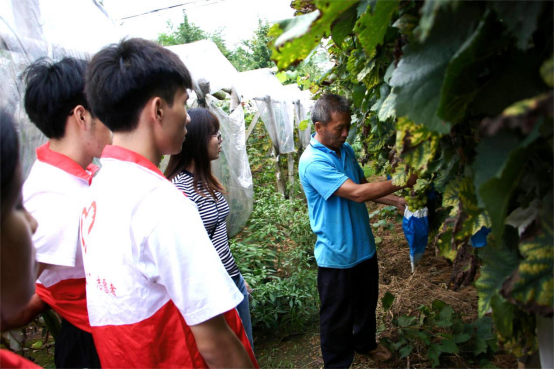 团队成员在走访中参观了当地农户康建国的阳光玫瑰葡萄传统种植大棚和新型种植大棚。在结构设计中,传统的葡萄种植大棚采用简单的钢架结构,以竹子和塑料薄膜为材料,结构较为简陋;在灌溉方面管理较为繁琐,需要较多的人工投入。而新型葡萄种植大棚采用更先进的材料和结构设计,结构更加牢固,抗风能力更强;在灌溉方面采用自动控制设备进行水肥管理,按照葡萄生长需要调节灌溉和肥料稀释程度,减少水肥浪费,降低了人工劳动强度,大大提高了农户的生产效率,进一步促进了葡萄产业的可持续发展。