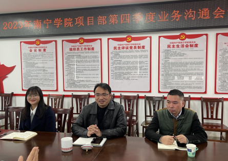 会上,北京华晟经世驻南宁学院项目部经理蔡婷婷就2023年第四季度核心工作完成情况进行汇报。2023年,企业师资团队积极参与学院各专业课程建设、深耕科研教改、指导学生创新创业、学科竞赛、认证考试等工作,成果丰硕;同时协助学院圆满完成了2023年招生任务和就业指标。新学期,企业师资团队将继续围绕产教融合环境建设组织学生参加各类学科竞赛,引进就业资源、开展招生宣传等工作,以此提升学生的专业学习兴趣,提高毕业生就业质量,维稳新生报到率。
