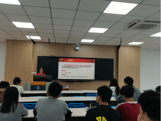 会议伊始,由陆敏蝶同志向与会的入党积极分子介绍学生党支部的基本情况,支部构成、支部特色活动、入党、发展及转正条件等内容,其目的是让入党积极分子不断提高思想政治,以实际行动向党组织靠拢。