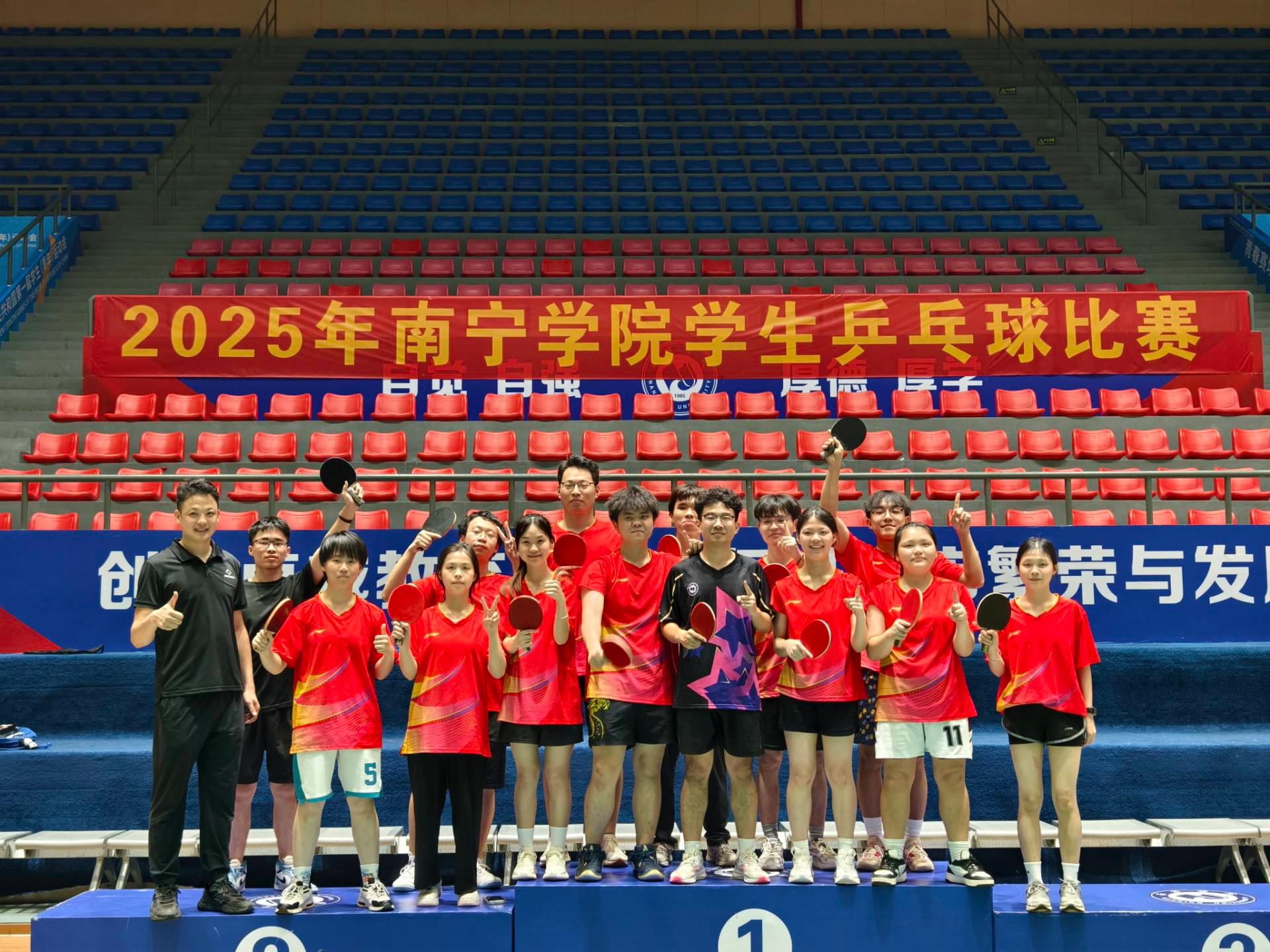 为积极响应国家关于加强学校体育工作的政策号召,南宁学院于2025年5月19日至21日在学校体育馆成功举办了2025年学生乒乓球比赛。这场赛事吸引了来自全校10个二级学院的94名选手参赛,经过三天的激烈角逐,信息工程学院代表队凭借出色表现摘得桂冠,智能制造学院、人工智能学院和数字经济学院分获二至四名。