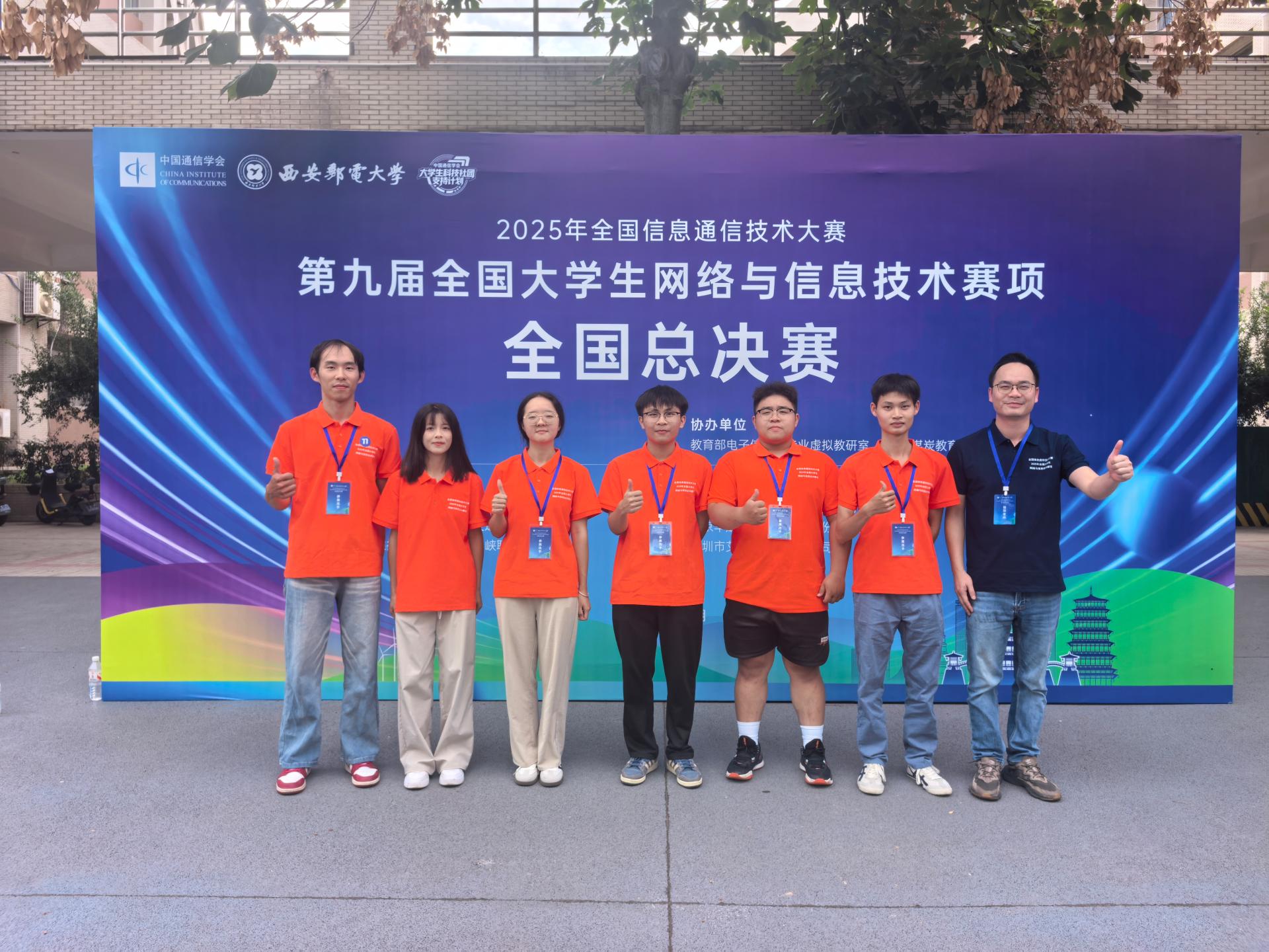 近日,在2025年全国大学生网络与信息技术大赛总决赛中,南宁学院信息工程学院通信工程专业莫景联、覃黄升、黄月汐、黄婷玉、阮家林、方靖翔6名同学,凭借扎实的专业功底和出色的现场表现,最终荣获全国三等奖6项,充分展现了我院学子良好的综合素质与创新实践能力。