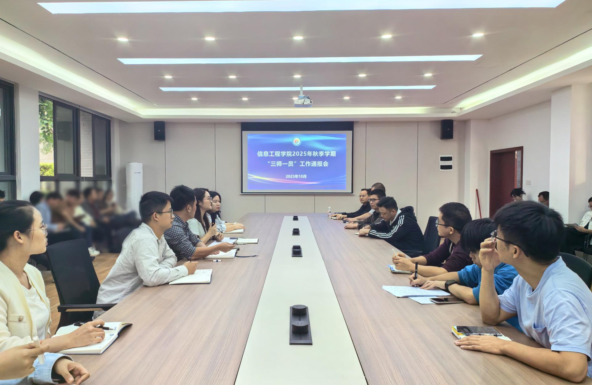 10月28日,信息工程学院在南跬谷A105会议室召开2025年秋季学期“三师一员”工作通报会,全面总结本学期以来协同育人工作开展情况,部署下一阶段重点任务。学院党委副书记廖秀媛、副院长陈积常出席会议,全体专业课教师、思政课教师、通识课教师及专兼职辅导员参加本次会议。