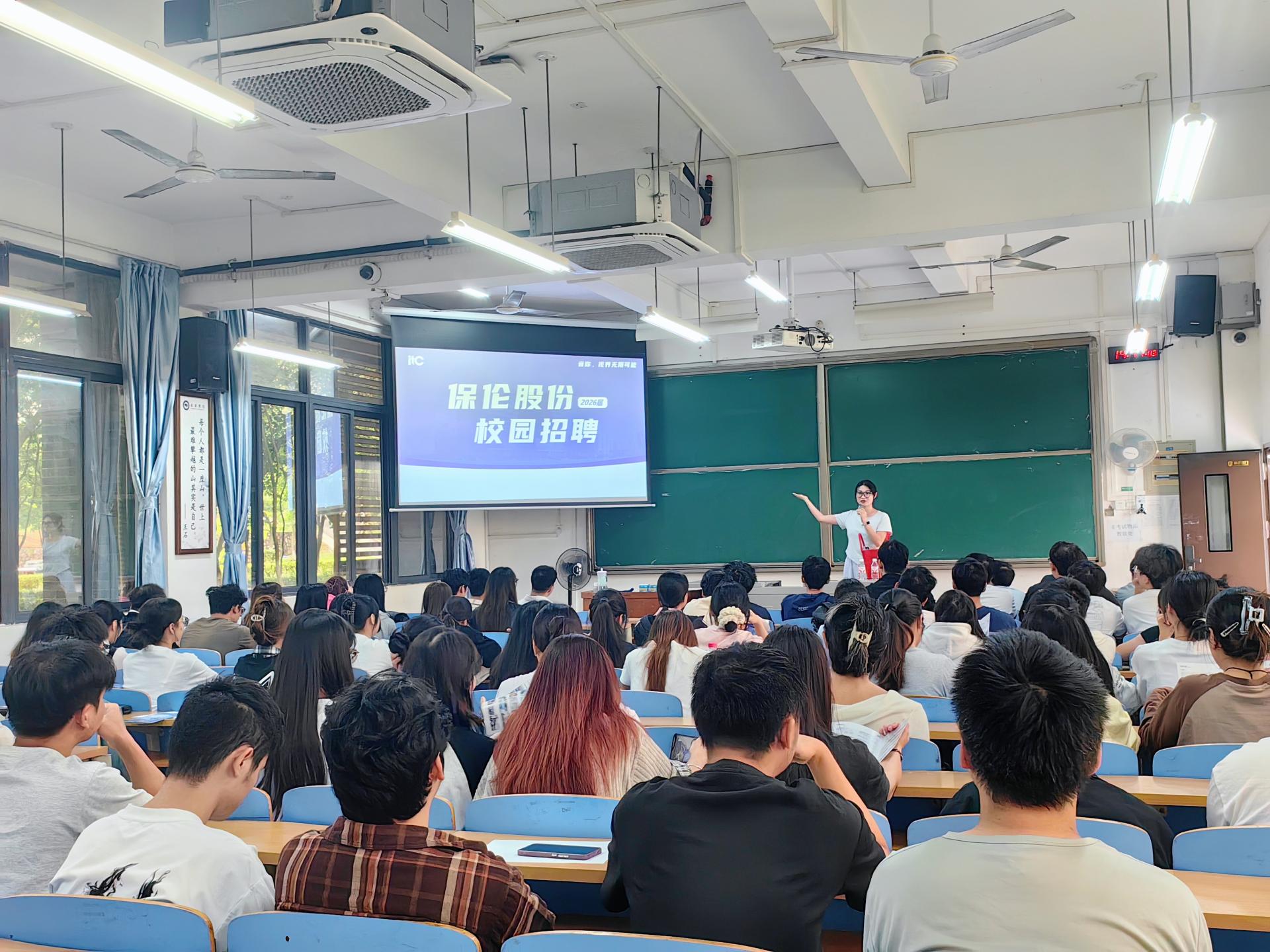 宣讲会伊始,企业代表通过视频与PPT结合的形式,详细介绍了广东保伦电子的发展历程、核心业务、行业地位及企业文化,让同学们直观了解企业的发展前景与工作氛围。随后校招负责人沈培杭重点解读了本次校招的岗位需求,涵盖了研发储干、方案工程师、售后工程师、销售工程师、大客户销售等五大类,提供了近120个优质岗位,岗位方向与信息工程学院专业设置契合度较高,为不同职业规划的毕业生提供了多元选择。