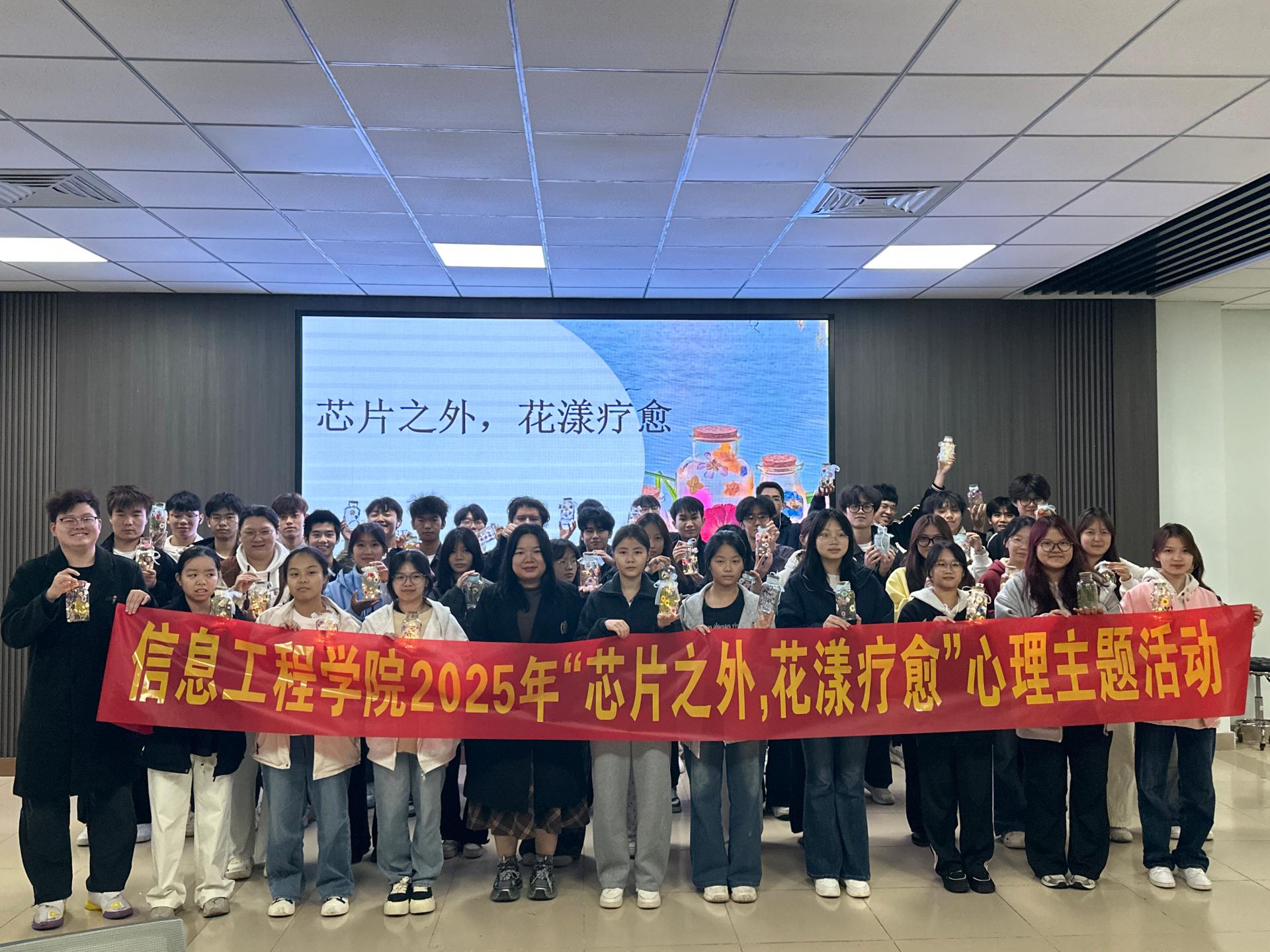 11月18日晚,信息工程学院“信·芯”心语驿站在创业园220室成功举办“芯片之外,花漾疗愈”创意手工活动。心语驿站工作人员及基层班级同学代表参与活动。