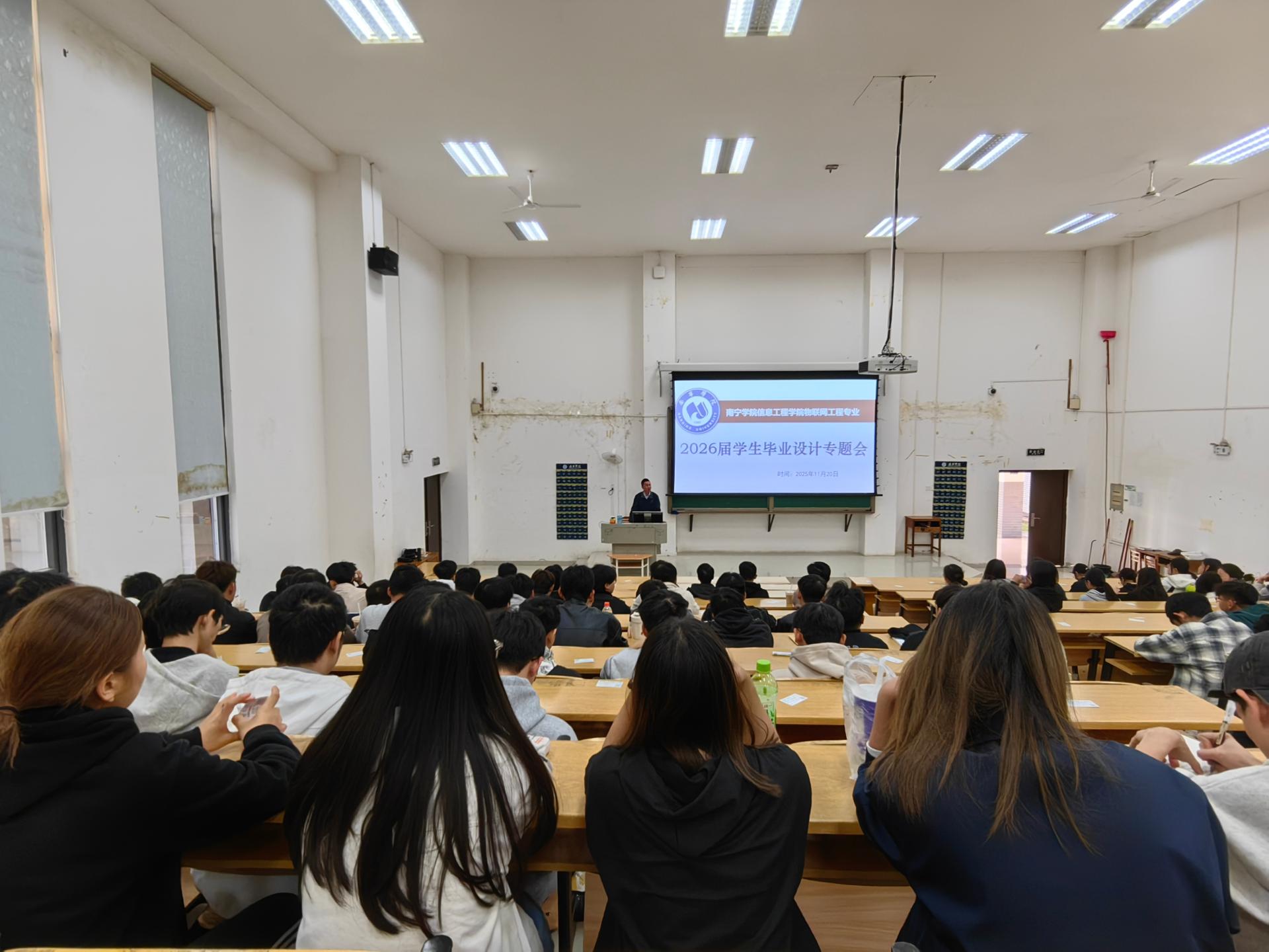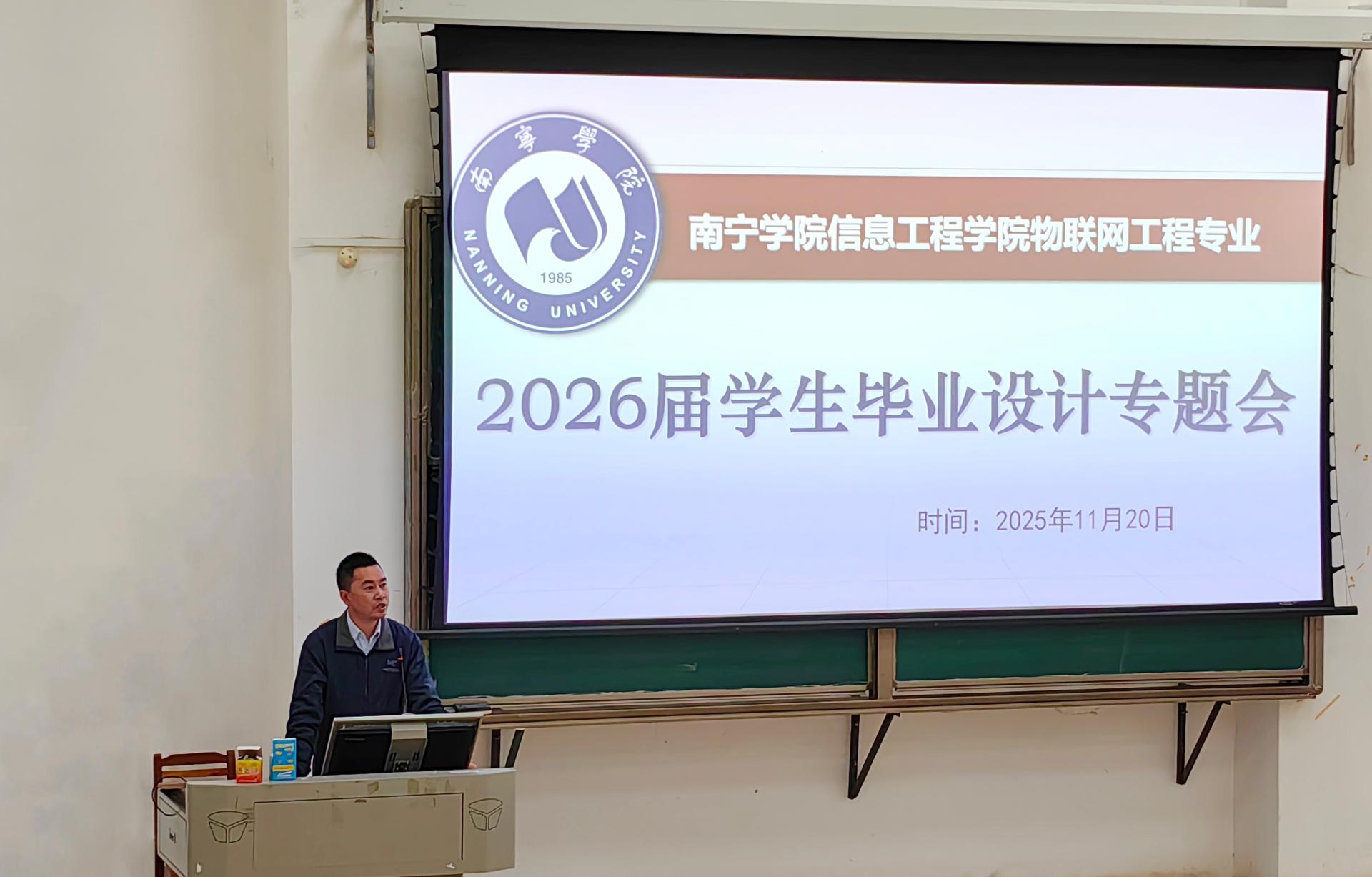 11月20日下午,信息工程学院物联网工程专业在敷文园F104教室为2022级物联网工程专业1-3班及2024级物联网工程(专升本)1班的同学们组织召开了一场毕业设计专题会。本次会议由汪小威老师主持,旨在为即将步入毕业设计阶段的同学们指明方向、明确要求,并为同学对毕业设计相关问题进行答疑,确保毕业设计工作顺利启动。