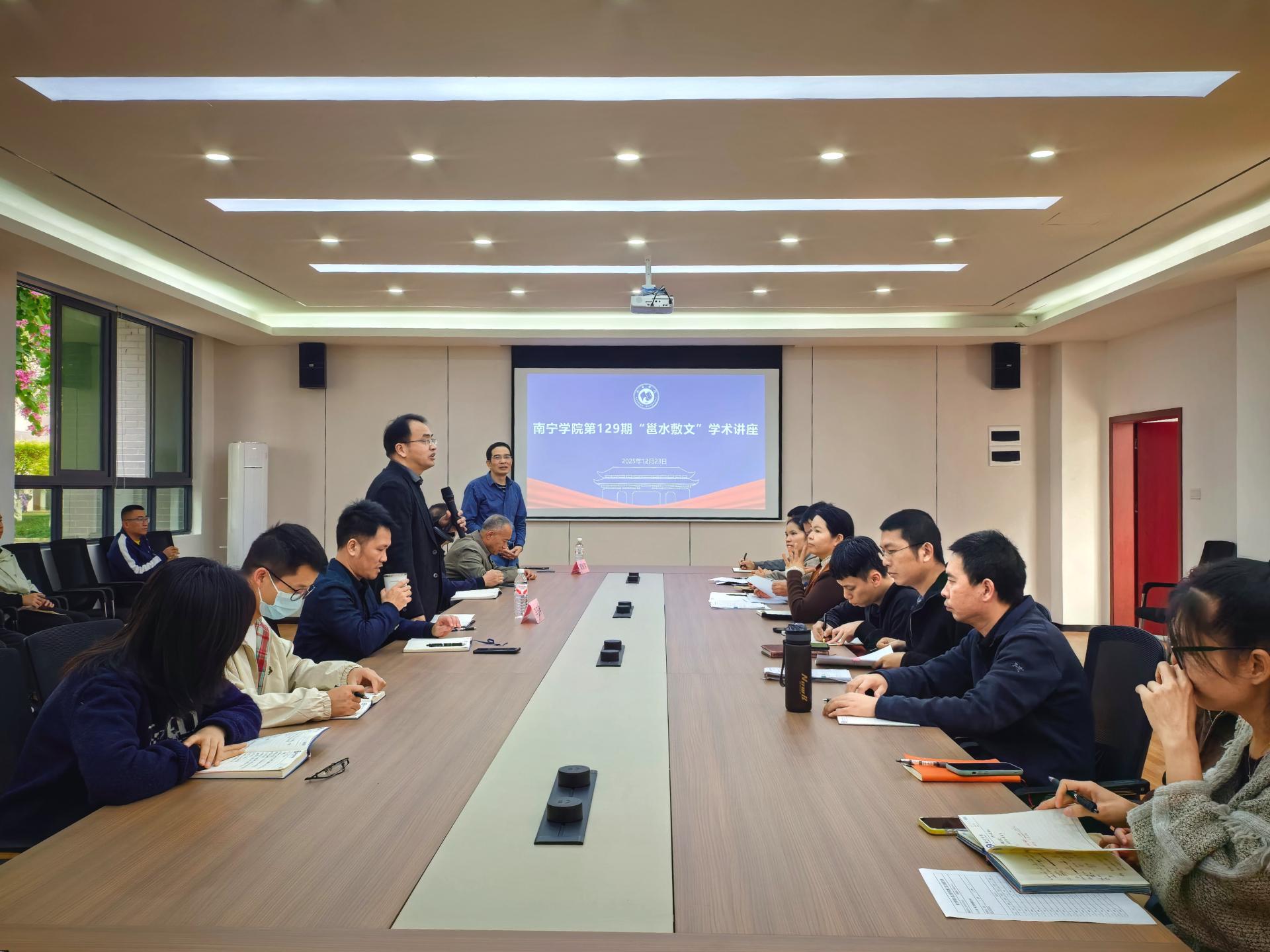 12月23日,南宁学院信息工程学院在南硅谷A-105会议室成功举办了第129期“邕水敷文”学术讲座。本期讲座特邀广西大学梁家荣教授担任主讲嘉宾,学院院长李庆年、副院长陈积常出席讲座,学院全体教师到场聆听学习。讲座由李庆年院长主持。