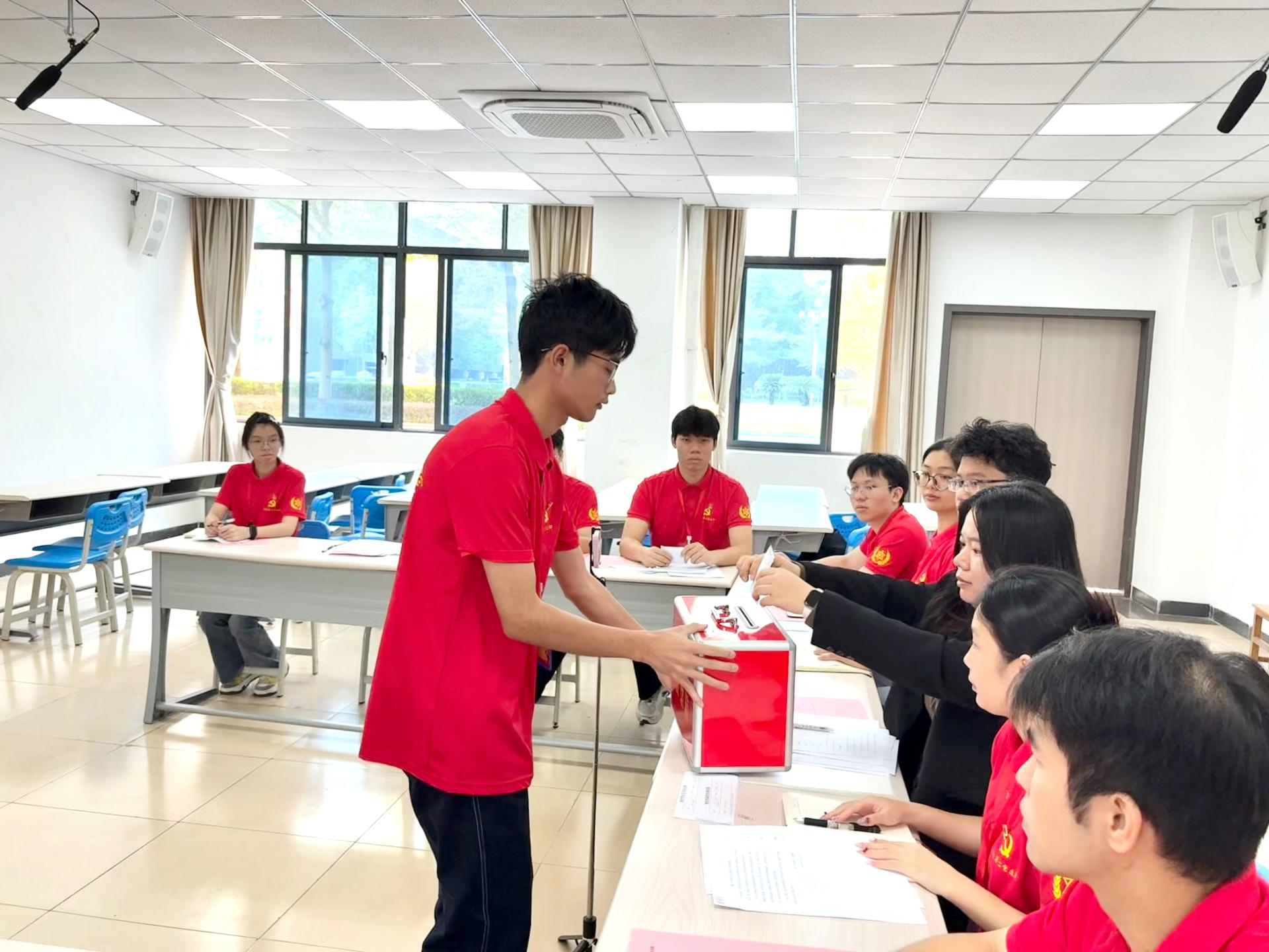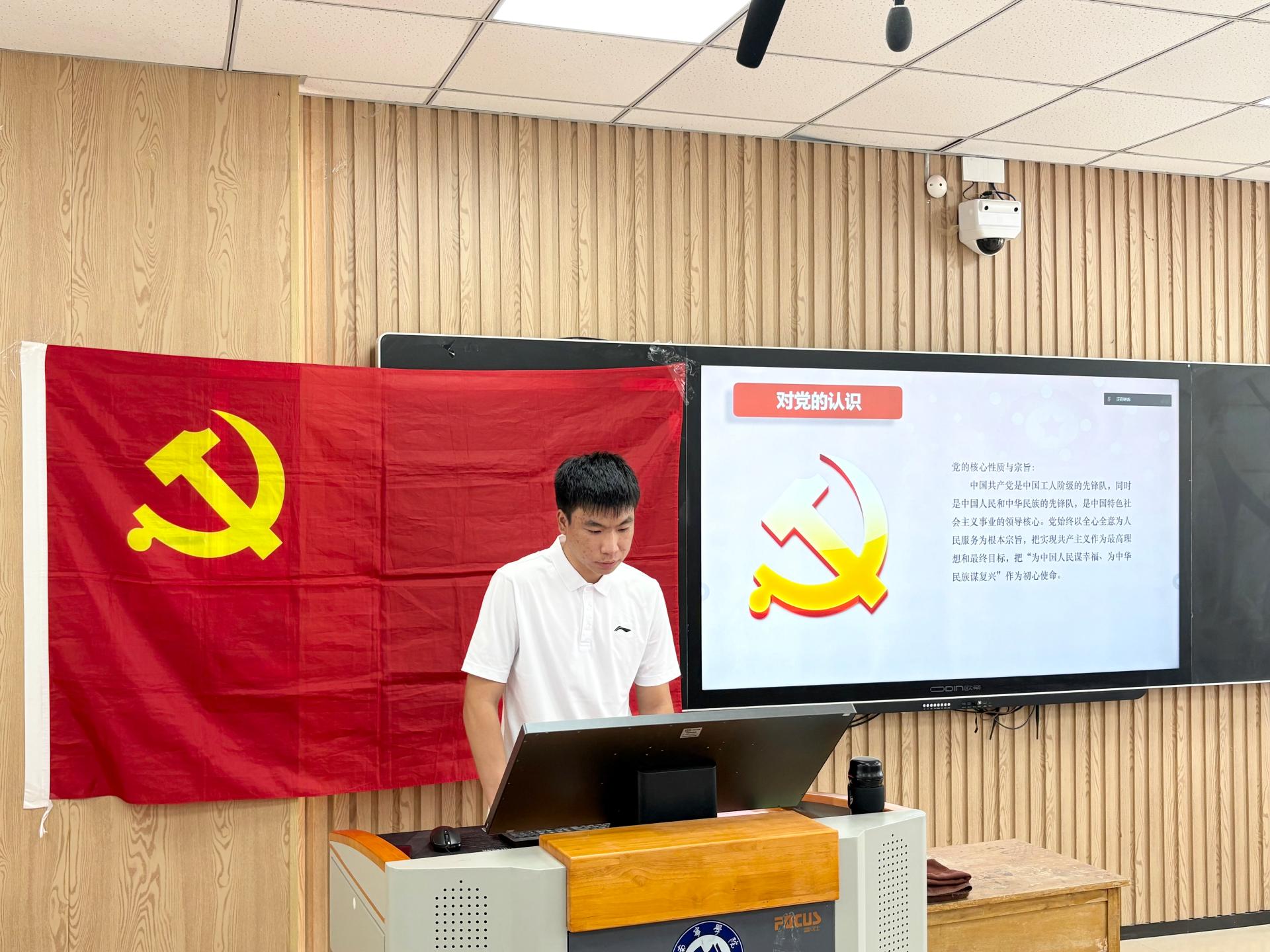 大会在庄严的国歌声中正式启幕。紧接着,发展对象逐一进行自我汇报,阐述自身入党动机、思想状况及对党的认知。紧接着,入党介绍人分别向支部介绍发展对象在考察培养期间政治思想、工作学习、作风纪律等方面的综合表现,并对其能否入党发表意见。随后,党支部组织委员李仁龙同志向大会报告了发展对象的审查情况,并对其能否入党表明意见。最后,支部正式党员进行无记名投票,一致同意接收黎荣恒、徐清等四名同志为中共预备党员。支部书记叶星彤老师向新同志表示祝贺,希望大家能够时刻牢记党员身份,勉励他们在学习和工作中强化政治意识,充分发挥模范带头作用,为学院发展贡献力量。