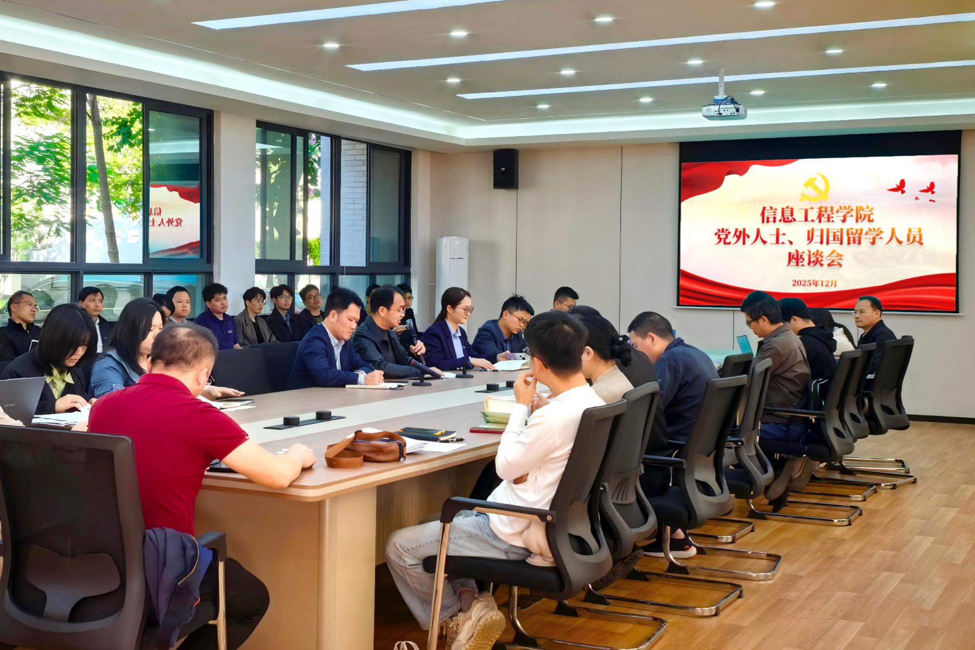 为充分发挥统一战线作用,集中智慧、凝聚力量,发挥党外人士教职工在学院建设发展中的积极作用,12月30日下午,信息工程学院在南硅谷A105会议室召开党外人士座谈会。学院党委书记李庆年、副书记廖秀媛,教工党支部书记陈积常和学院党外人士教职工代表、归国留学人员参加会议。会议由李庆年书记主持。