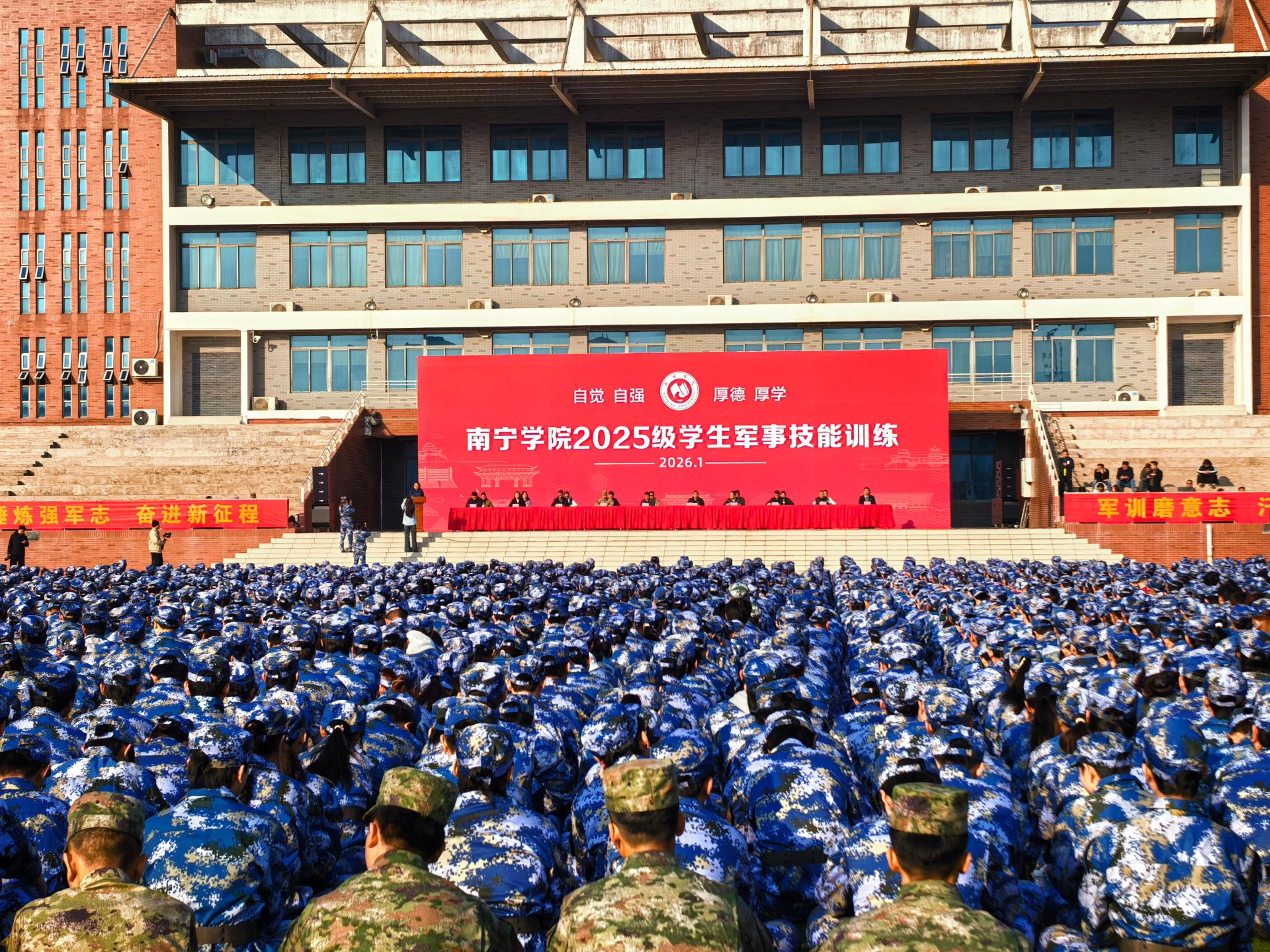 2026年1月10日,南宁学院2025级学生军事技能训练正式拉开帷幕。据悉,本次军事技能训练为期14天,军训内容系统而全面,涵盖“内务条令、纪律条令、队列条令”的基础学习,到“自动步枪操作、轻武器射击、战术基础动作”的实操体验;从“综合格斗、战场医疗救护”的实用技能,到“核生化防护、行军拉练”的综合素养培养,课程设置科学而紧凑,受训学生们即将接受严格的军事技能训练。