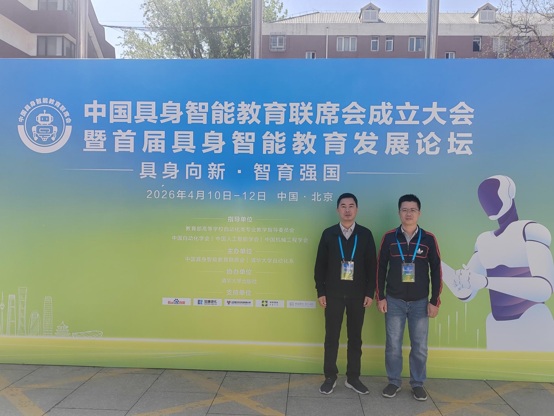 为紧跟人工智能领域前沿发展,探索具身智能专业建设与信息类专业人才培养新路径,2026 年 4 月 11 日至 12 日,信息工程学院教师汪小威、陆涛赴北京参加中国具身智能教育联席会成立大会暨首届具身智能教育发展论坛,与国内顶尖高校专家学者、行业领军人物深度交流,学习前沿成果与建设经验,为我校相关专业升级、产教融合发展汲取宝贵思路。